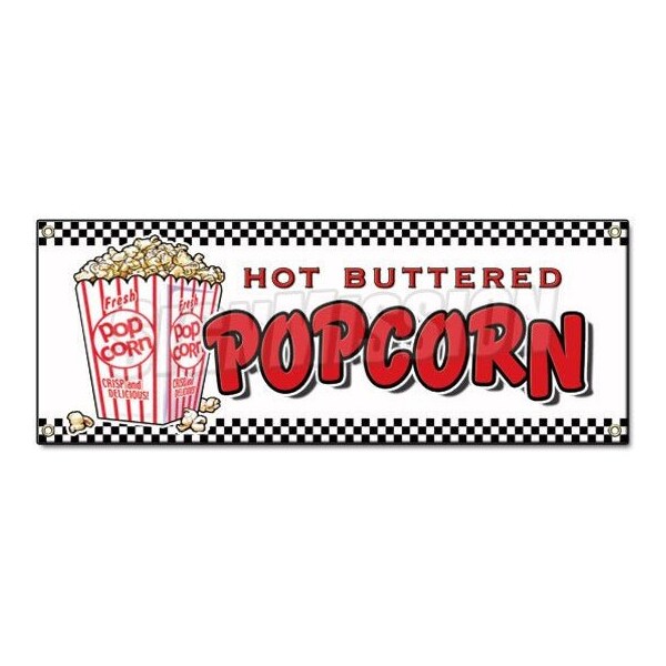 POPCORN BANNER SIGN stand cart concession signs kettle corn hot buttered