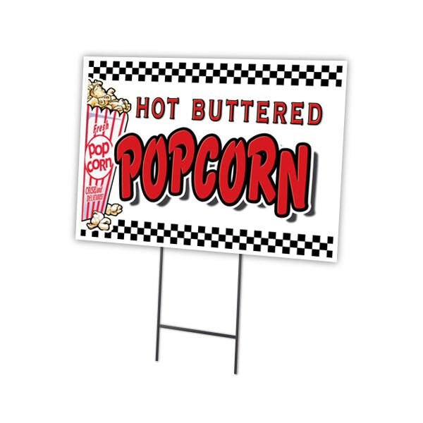 Popcorn Yard Sign & Stake outdoor plastic coroplast window, C-1216 Popcorn