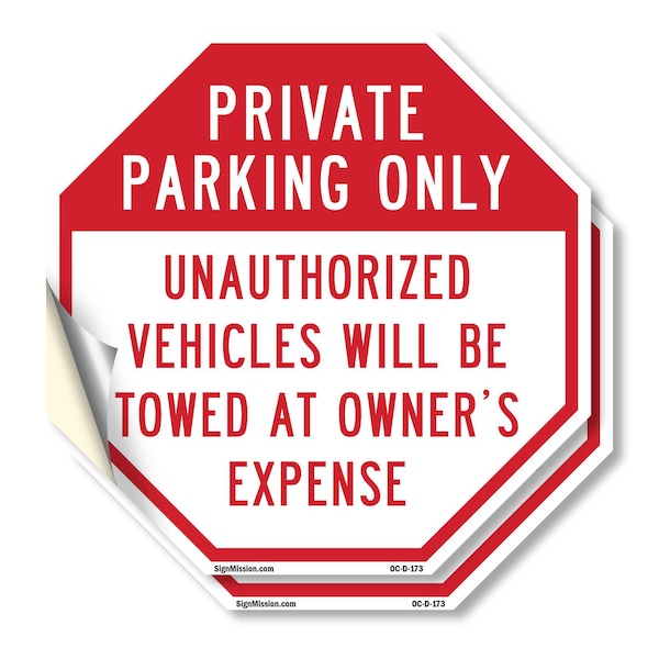 Private Parking Only Unauthorized V, 4 inch X 4 inch, Vinyl Decal, 2PK