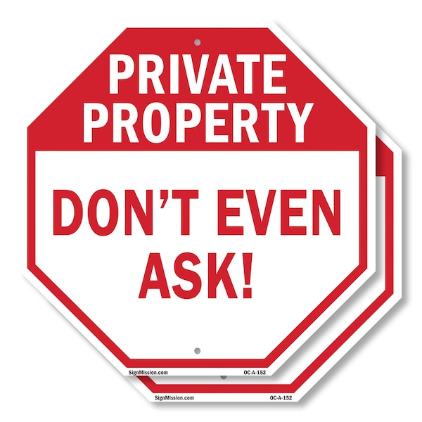 Private Property Don't Even Ask!, 6 inch X 6 inch, Plastic Sign, 2PK