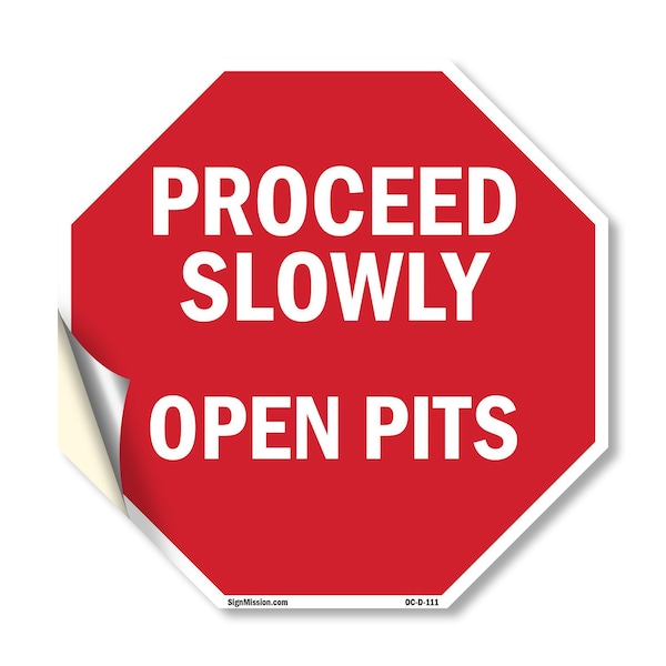 Proceed Slowly Open Pits, 10 Inch X 10 Inch, Vinyl Decal