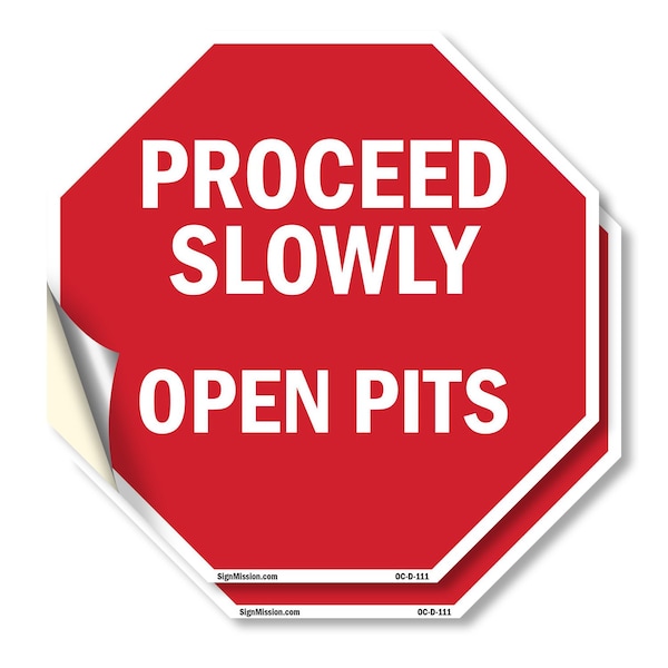 Proceed Slowly Open Pits, 4 inch X 4 inch, Vinyl Decal, 2PK