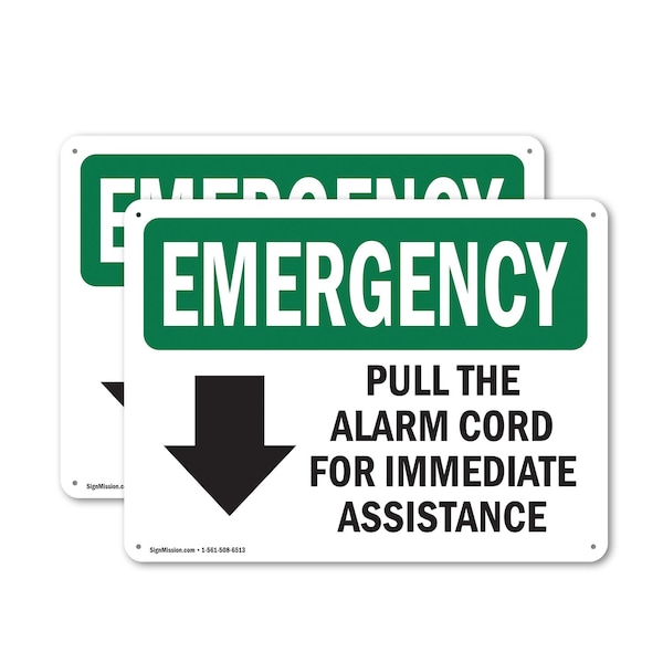 Pull The Alarm Cord For Immediate With Symbol, 10 in W x Rectangle, Plastic