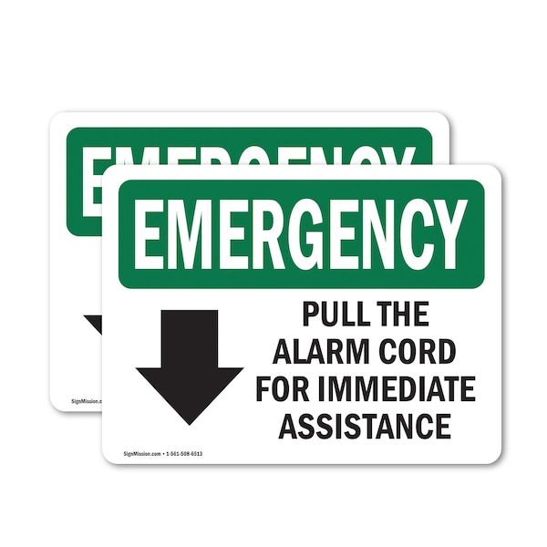 Pull The Alarm Cord For Immediate With Symbol, 5 in W x Rectangle, Vinyl Decal