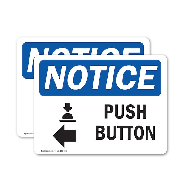 Push Button (Left Arrow) Sign With Symbol, 5 in W x Rectangle, Vinyl Decal