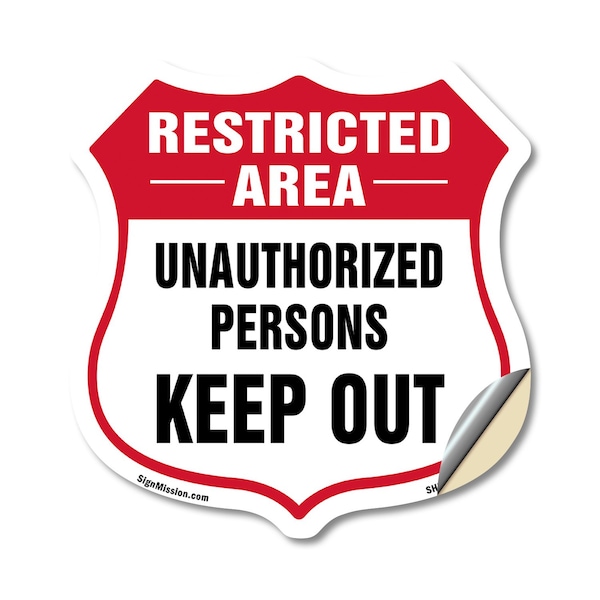 Enforce Safety with the "Unauthorized Persons Keep Out" Shield Sign Decal Warn against unauthorized entry with this Shield Sign Decal that states, "Unauthorized Persons Keep Out." Perfect for factories, construction zones, or high-security facilities, this sign helps ensure compliance with safety regulations and protects sensitive areas. Crafted for Longevity This 18 inch by 18 inch sign is made from heavy-duty commercial-grade 3.2 mil weather resistant 3M vinyl to resist scratch and wear. Fade-resistant inks and UV-protective coating ensure clear visibility over time. Adhesive backing specifically designed to adhere to indoor or outdoor surfaces yet can be removed without leaving behind a sticky residue. Professional and Clear Messaging The polished finish and bold text ensure that the sign is noticed and respected, maintaining safety and order in restricted zones. Built to last, it's an effective solution for restricted access areas.
