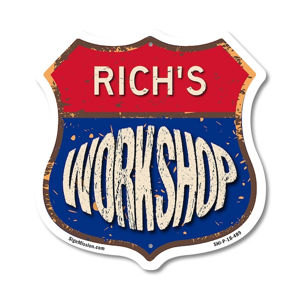 Add a Fun, Personalized Touch to Your Workshop with SignMission's Custom Shield-Shaped Signs Make your Workshop stand out with a sign that's not just eye-catching, but also full of personality! Our shield-shaped signs are the perfect way to add a touch of fun and style to your space. Featuring your name and a sleek, polished design, these signs are crafted to bring a modern, professional vibe to any Workshop, workshop, or man cave. With their bold look and durable commercial-grade plastic construction, they'll grab attention and give your space that extra bit of flair for years to come. Bring Modern Durability to Your Workshop Our shield-shaped signs aren't just stylish-they're designed with long-lasting, commercial-grade plastic that ensures both a sleek finish and unbeatable durability. Perfect for any indoor or outdoor space, these signs are resistant to cracking, fading, and weather damage. They come with pre-drilled holes for easy mounting, so you can display them effortlessly wherever they look best. Give your Workshop a polished and timeless appeal with a sign that combines charm and toughness. Our shield-shaped signs are expertly crafted to bring both style and resilience to your space while featuring your personalized touch.