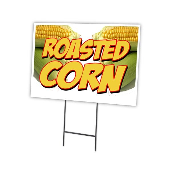 Roasted Corn Yard Sign & Stake outdoor plastic coroplast window, C-1824 Roasted Corn