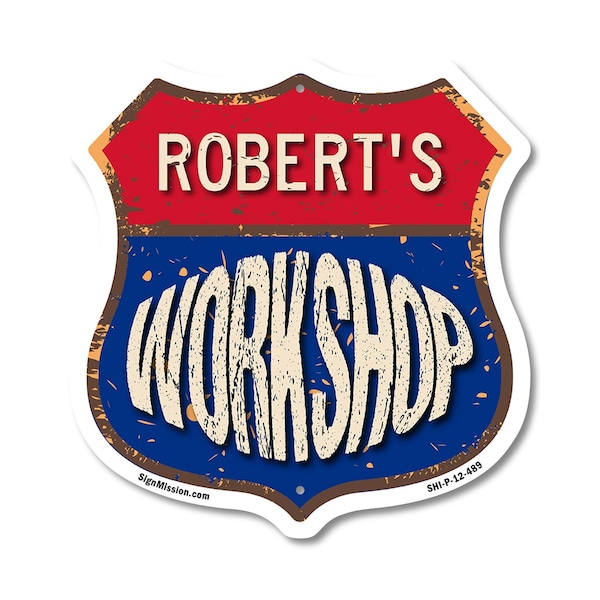 Add a Fun, Personalized Touch to Your Workshop with SignMission's Custom Shield-Shaped Signs Make your Workshop stand out with a sign that's not just eye-catching, but also full of personality! Our shield-shaped signs are the perfect way to add a touch of fun and style to your space. Featuring your name and a sleek, polished design, these signs are crafted to bring a modern, professional vibe to any Workshop, workshop, or man cave. With their bold look and durable commercial-grade plastic construction, they'll grab attention and give your space that extra bit of flair for years to come. Bring Modern Durability to Your Workshop Our shield-shaped signs aren't just stylish-they're designed with long-lasting, commercial-grade plastic that ensures both a sleek finish and unbeatable durability. Perfect for any indoor or outdoor space, these signs are resistant to cracking, fading, and weather damage. They come with pre-drilled holes for easy mounting, so you can display them effortlessly wherever they look best. Give your Workshop a polished and timeless appeal with a sign that combines charm and toughness. Our shield-shaped signs are expertly crafted to bring both style and resilience to your space while featuring your personalized touch.