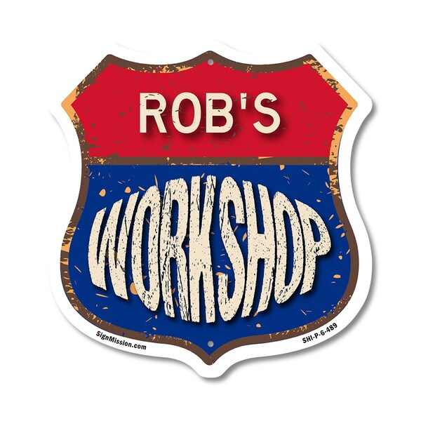 Add a Fun, Personalized Touch to Your Workshop with SignMission's Custom Shield-Shaped Signs Make your Workshop stand out with a sign that's not just eye-catching, but also full of personality! Our shield-shaped signs are the perfect way to add a touch of fun and style to your space. Featuring your name and a sleek, polished design, these signs are crafted to bring a modern, professional vibe to any Workshop, workshop, or man cave. With their bold look and durable commercial-grade plastic construction, they'll grab attention and give your space that extra bit of flair for years to come. Bring Modern Durability to Your Workshop Our shield-shaped signs aren't just stylish-they're designed with long-lasting, commercial-grade plastic that ensures both a sleek finish and unbeatable durability. Perfect for any indoor or outdoor space, these signs are resistant to cracking, fading, and weather damage. They come with pre-drilled holes for easy mounting, so you can display them effortlessly wherever they look best. Give your Workshop a polished and timeless appeal with a sign that combines charm and toughness. Our shield-shaped signs are expertly crafted to bring both style and resilience to your space while featuring your personalized touch.
