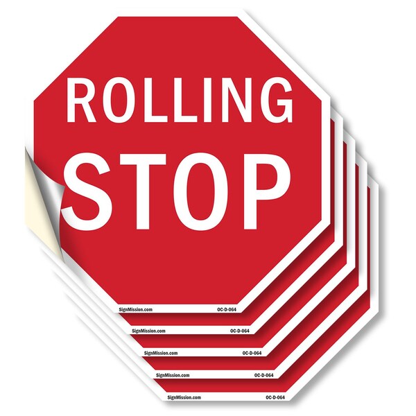 Rolling Stop, 6 inch X 6 inch, Vinyl Decal, 5PK