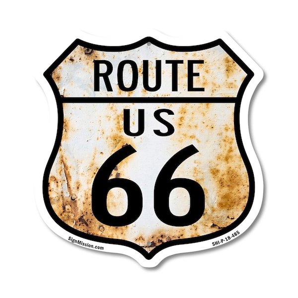 Add Charm to Your Space with the "Route US 66 Rustic" Shield Sign Bring the nostalgic charm of Route 66 to your decor with this Rustic Shield Sign. Perfect for garages, workshops, or home decor, this sign celebrates the timeless allure of America's most famous highway. Its weathered design evokes the history and adventure of the open road. Weatherproof and Durable Construction Crafted from heavy-duty commercial grade polystyreneplastic, this 18 inch by 18 inch sign resists rust and wear. Fade-resistant inks and UV-protective coating ensure the rustic design stays vibrant and effective over time. Pre-cut holes make installation fast and secure on fences, walls, or posts. A Unique Rustic Aesthetic The weathered look adds vintage charm, making it a standout piece for collectors or fans of Route 66 history. Built to last, it's a meaningful addition to any Route 66-collection.