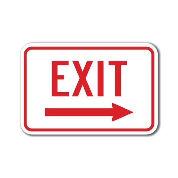 Safety Sign, 12 in Height, Aluminum, 18 in Length, Enter-Exit Signs -Exit w right