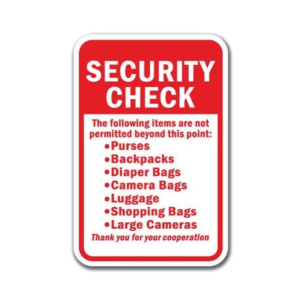 Safety Sign, 12 in Height, Aluminum, Security Check - Securi