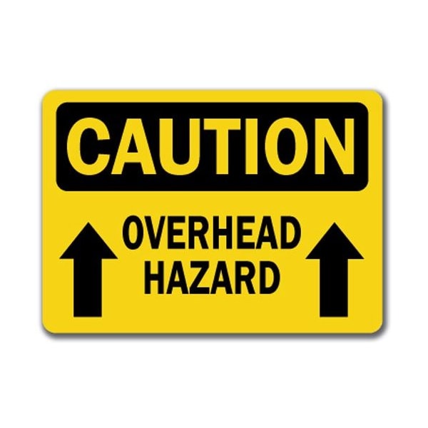 Safety Sign, 14 in Height, Plastic, 10 in Length, Overhead Hazard
