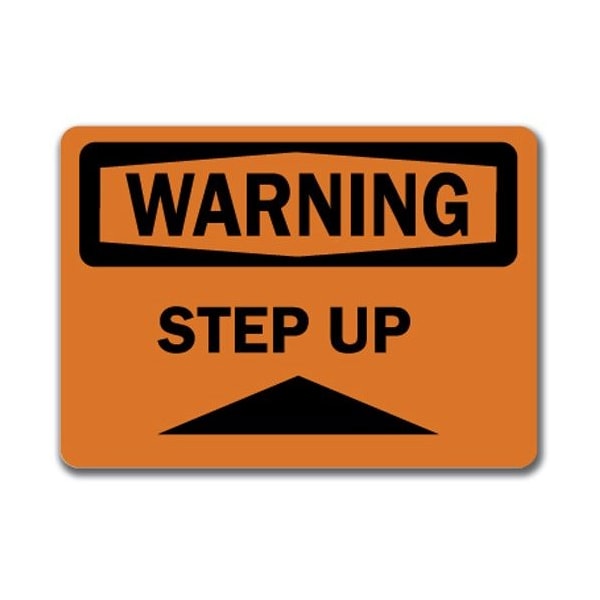Safety Sign, 14 in Height, Plastic, 10 in Length, Step Up