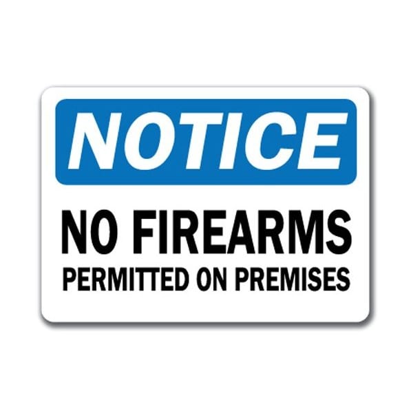 Safety Sign, 14 in Height, Plastic, No Firearms Permitted On Premises