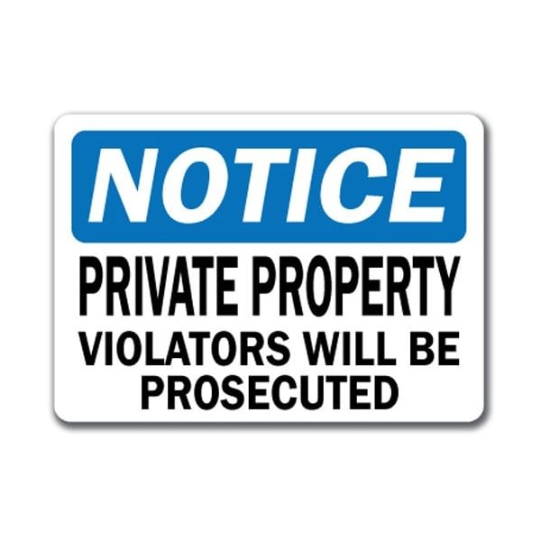 Safety Sign, 14 in Height, Plastic, Private Property Prosecuted