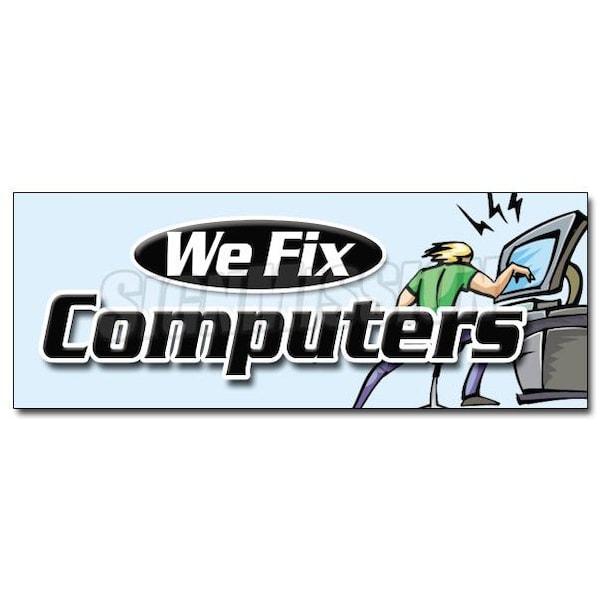 Safety Sign, 24 in Height, Vinyl, 9 in Length, We Fix Computers