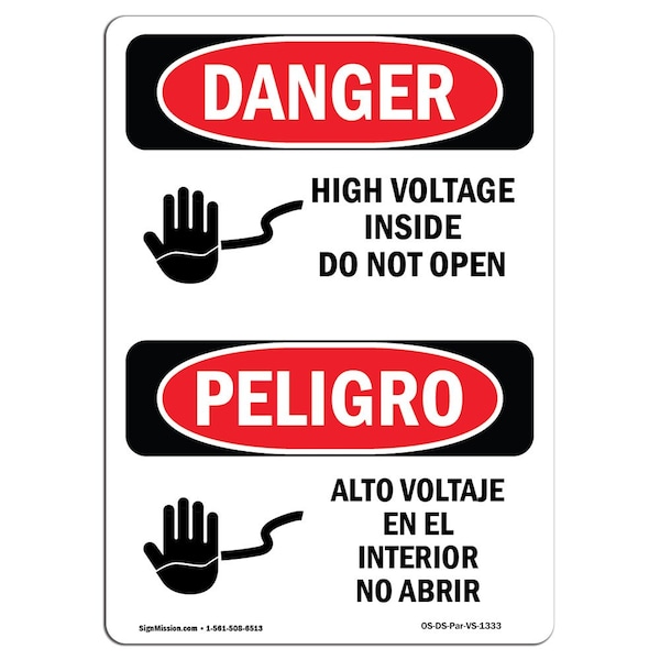 Safety Sign, OSHA, 10" Height, Rigid Plastic, High Voltage Inside Do Not Open Spanish