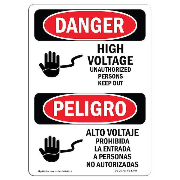 Safety Sign, OSHA, 14" Height, Rigid Plastic, High Voltage Persons Keep Out Spanish