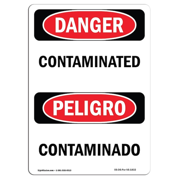 Safety Sign, OSHA Danger, 10" Height, Contaminated, Bilingual Spanish