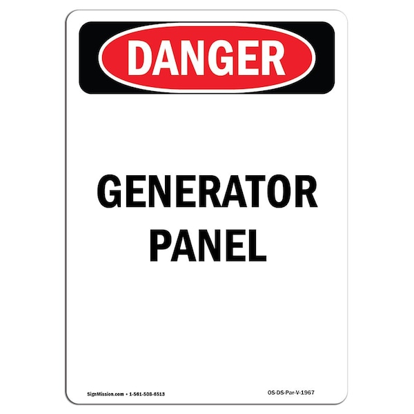 Safety Sign, OSHA Danger, 10" Height, Generator Panel, Portrait