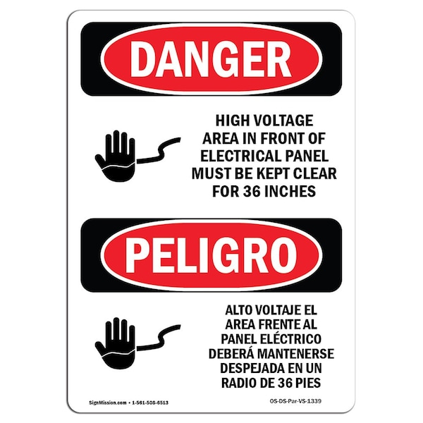 Safety Sign, OSHA Danger, 10" Height, Voltage Electrical Panel 36 Inches Bilingual Spanish