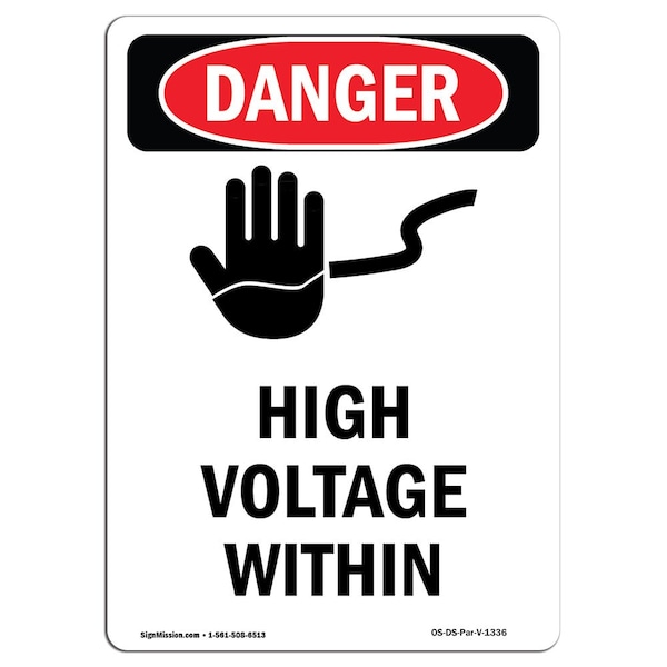 Safety Sign, OSHA Danger, 14" Height, High Voltage Within, Portrait