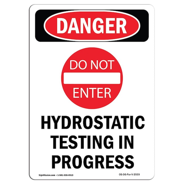 Safety Sign, OSHA Danger, 14" Height, Hydrostatic Testing, Portrait