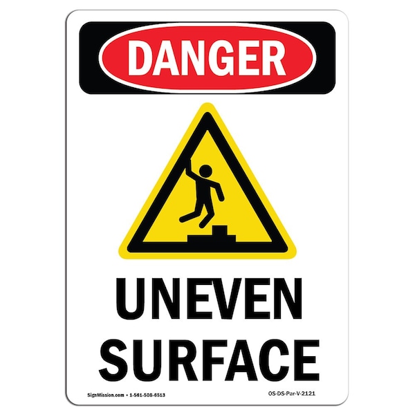 Safety Sign, OSHA Danger, 14" Height, Uneven Surface, Portrait