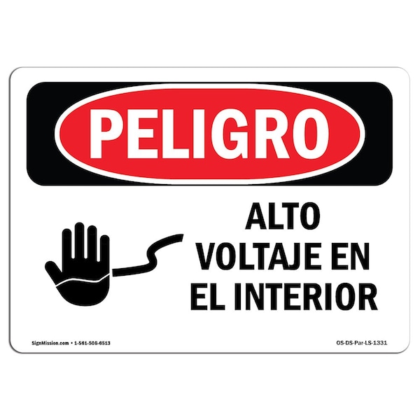 Safety Sign, OSHA Danger, 18" Height, 24" Width, High Voltage Inside Spanish