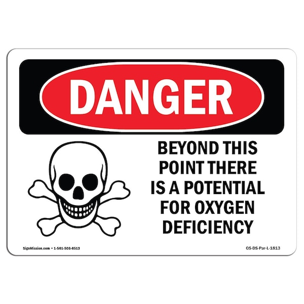 Safety Sign, OSHA Danger, 18" Height, Oxygen Deficiency Beyond This Point, Landscape