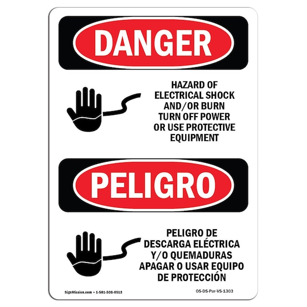 Safety Sign, OSHA Danger, 24" Height, Electrical Shock Burn Off Power Bilingual Spanish
