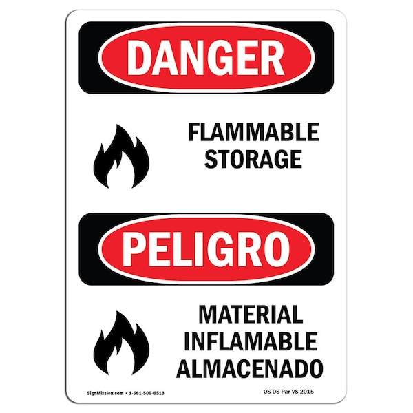 Safety Sign, OSHA Danger, 24" Height, Flammable Storage, Bilingual Spanish