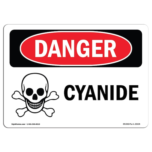 Safety Sign, OSHA Danger, 3.5" Height, 5" Width, Cyanide, Landscape