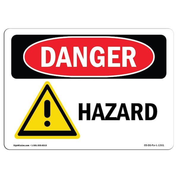 Safety Sign, OSHA Danger, 5" Height, 7" Width, Hazard, Landscape