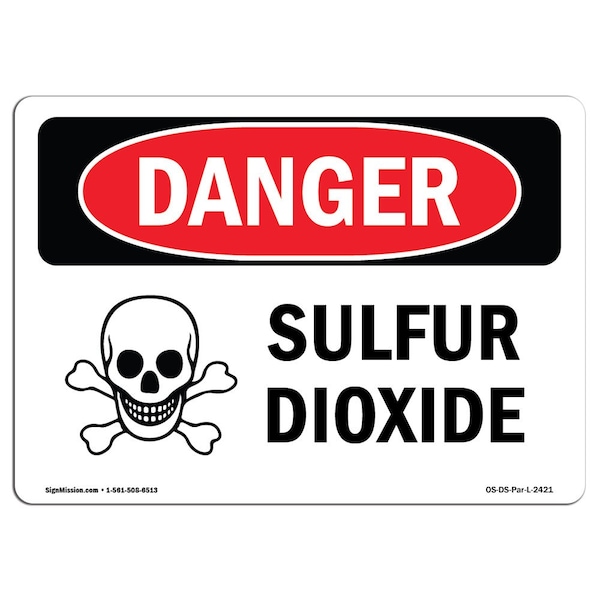 Safety Sign, OSHA Danger, 5" Height, 7" Width, Sulfur Dioxide, Landscape
