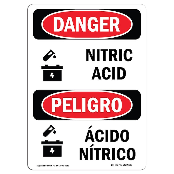 Safety Sign, OSHA Danger, 5" Height, Bilingual Spanish