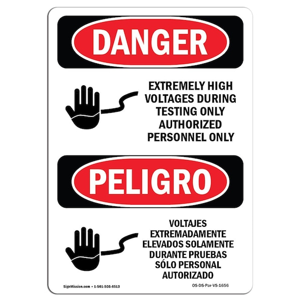 Safety Sign, OSHA Danger, 5" Height, Extremely High Voltages Bilingual Spanish