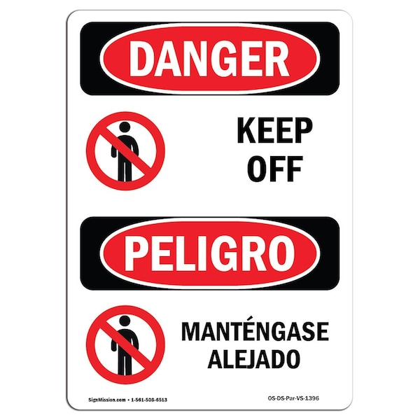 Safety Sign, OSHA Danger, 5" Height, Keep Off, Bilingual Spanish