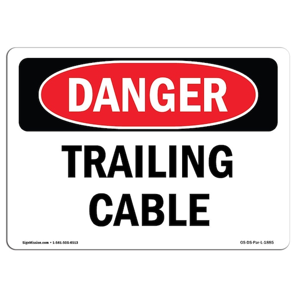 Safety Sign, OSHA Danger, 5" Height, Trailing Cable, Landscape