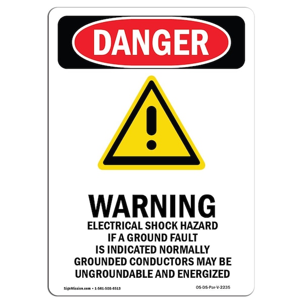 Safety Sign, OSHA Danger, 5" Height, Warning Electrical, Portrait