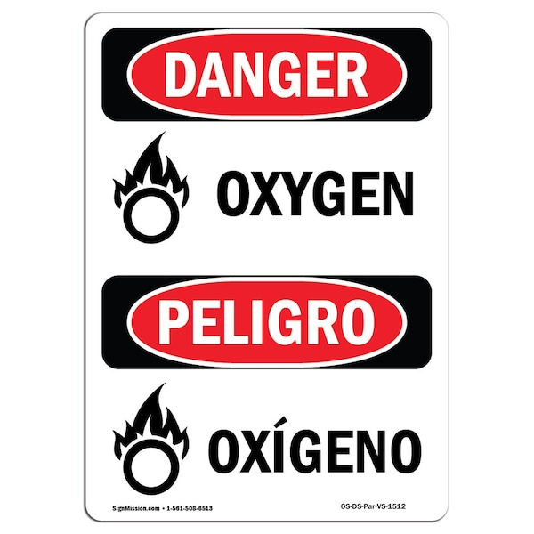 Safety Sign, OSHA Danger, 7" Height, Oxygen, Bilingual Spanish
