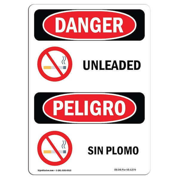 Safety Sign, OSHA Danger, 7" Height, Unleaded, Bilingual Spanish