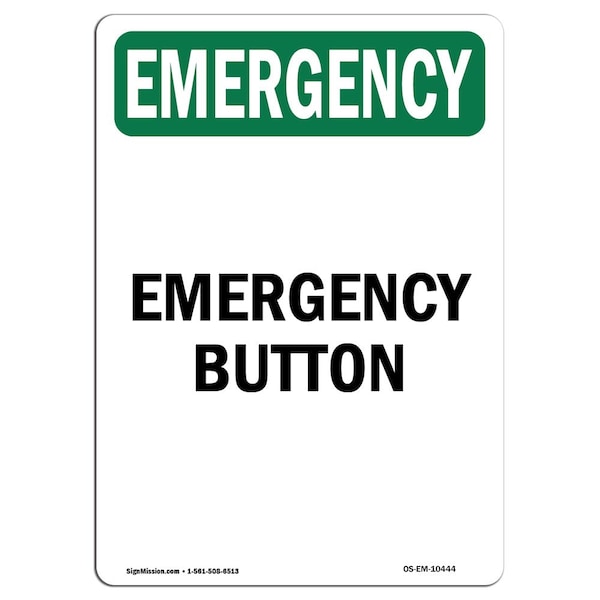 Safety Sign, OSHA EMERGENCY, 7" Height, Button, Portrait
