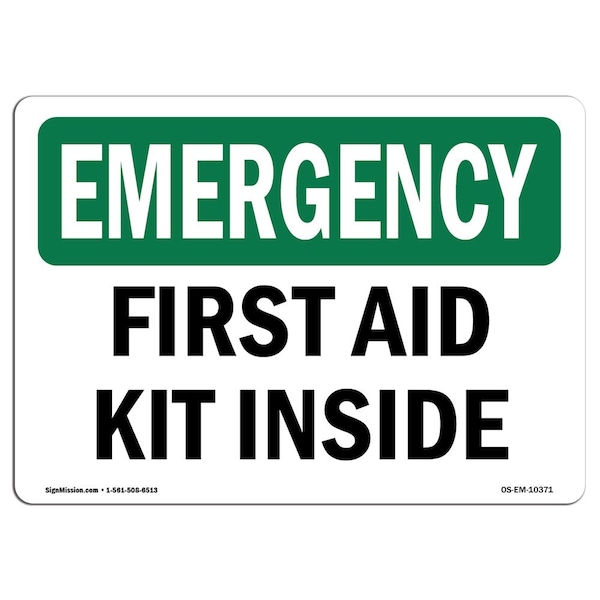 Safety Sign, OSHA EMERGENCY, 7" Height, First Aid Kit Inside, Landscape, OS-EM-D-L-10371