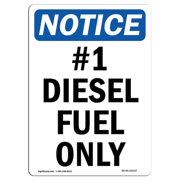 Safety Sign, OSHA Notice, 18" Height, No. 1 Diesel Fuel Only Sign, Portrait