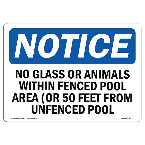 Safety Sign, OSHA Notice, 18" Height, No Glass Or Animals Within Fenced Pool Area Sign, Landscape
