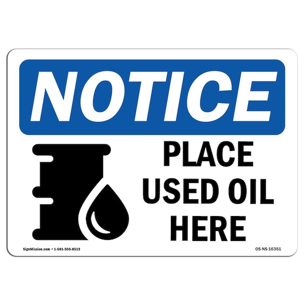Safety Sign, OSHA Notice, 3.5" Height, NOTICE Place Used Oil Here Sign, Landscape, 10PK